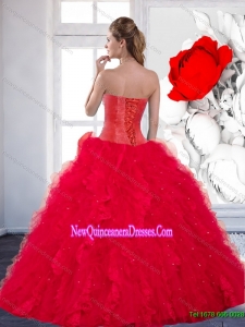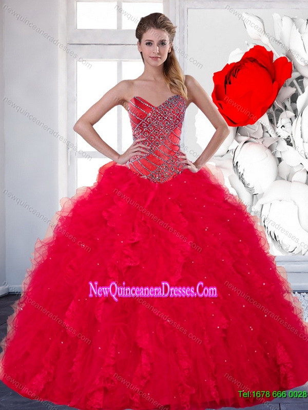 red sweetheart sweet sixteen quinceanera dresses with beading ruffles,