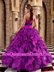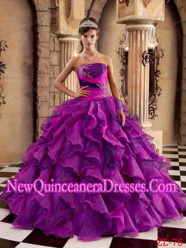 2014 Multi-color Ball Gown Strapless Organza Ruffles Popular Quinceanera Gowns