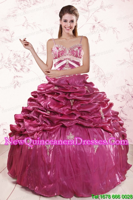 2015 Unique Appliques Quinceanera Dresses with Spaghetti Straps