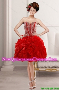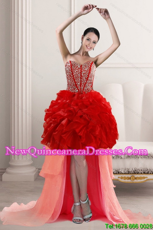 , 2015 Beautiful High Low Dama Dresses with Beading and Ruffles