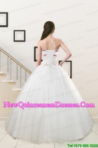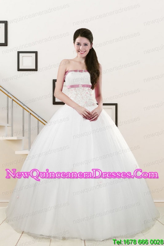 2015 Cheap Strapless Appliques and Belt Quinceanera Dresses in White