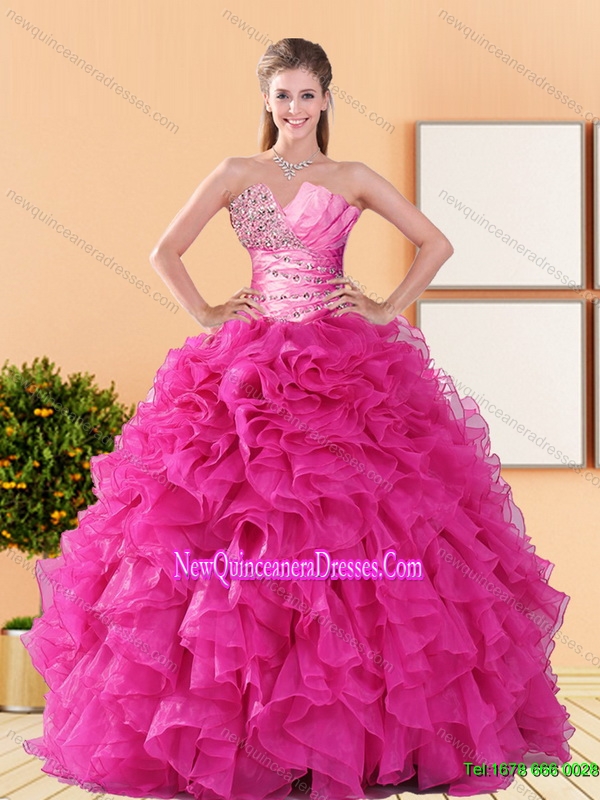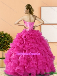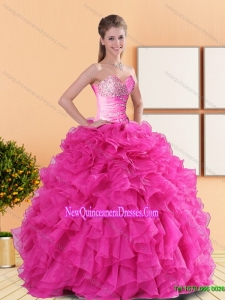 2015 Comfortable Beading and Ruffles Quinceanera Dresses in Hot Pink