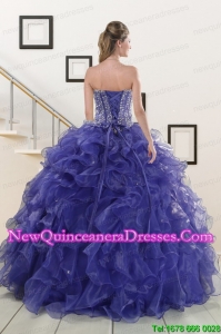 2015 Custom Made Sweetheart Purple Quinceanera Dresses with Beading and Ruffles