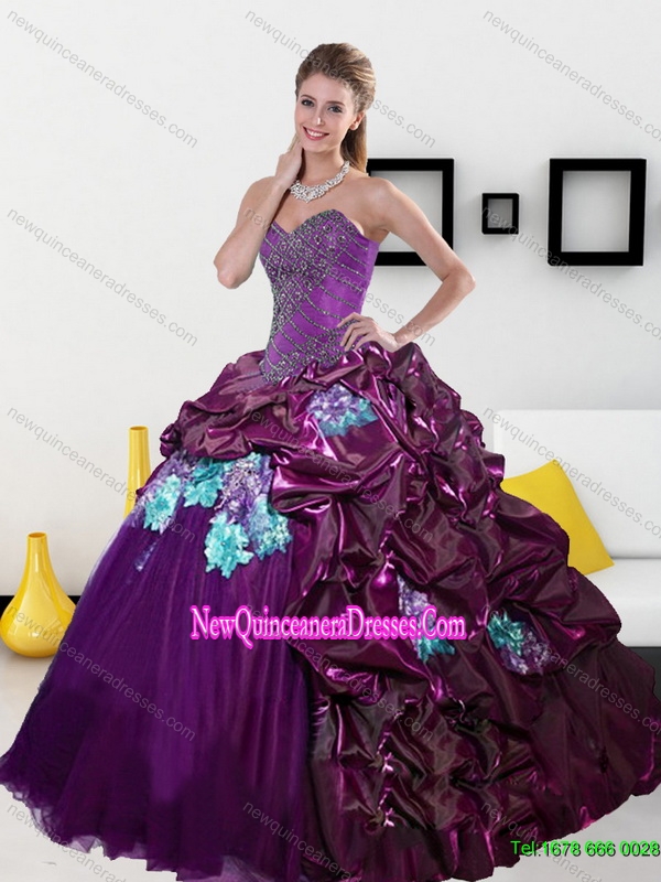 2015 Custom Made Sweetheart Quinceanera Dresses with Pick Ups and Appliques