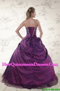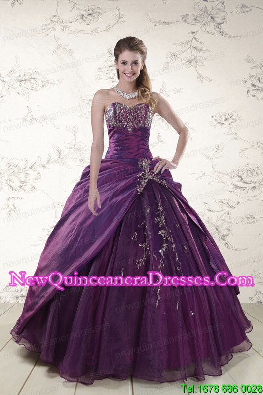 2015 Discount Purple Sweetheart Appliques Quinceanera Dresses