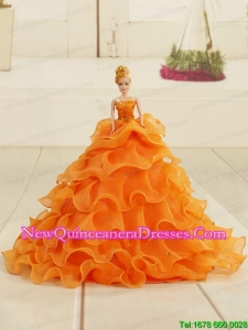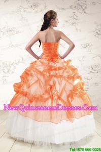 2015 Fashionable Strapless Appliques and Beading Quinceanera Dresses in Orange