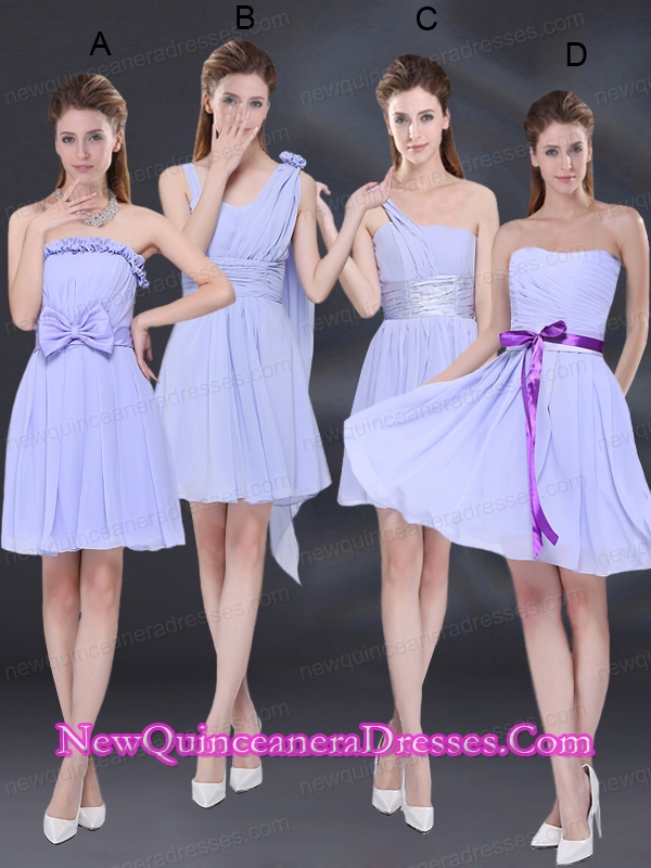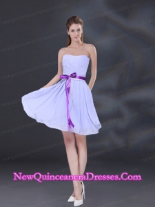 2015 Ruching and Belt Chiffon Dama Dresses in Lavender