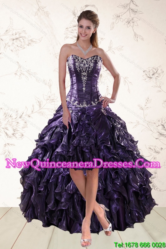 2015 Exclusive Purple High Low Dama Dresses for Spring