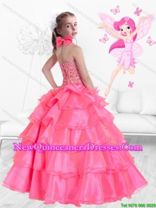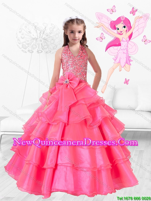 2015 Fall New Style Hand Made Flowers Rose Pink Mini Quinceanera Dresses with Halter Top