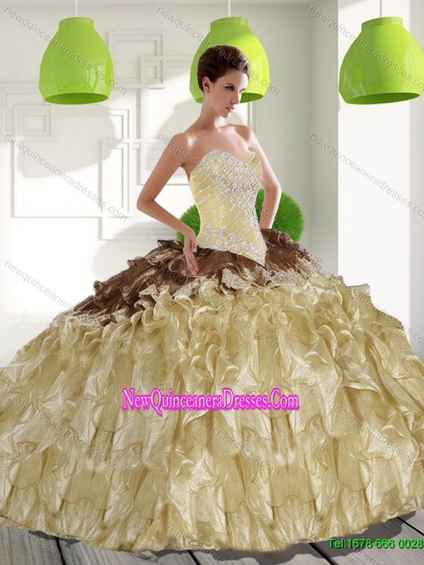 champagne sweetheart sweet sixteen quinceanera dresses with beading ruffles,