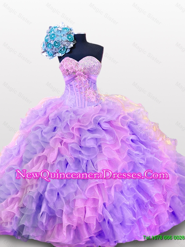 multi color sweetheart organza quinceaneras dress with sleeveless 2015,