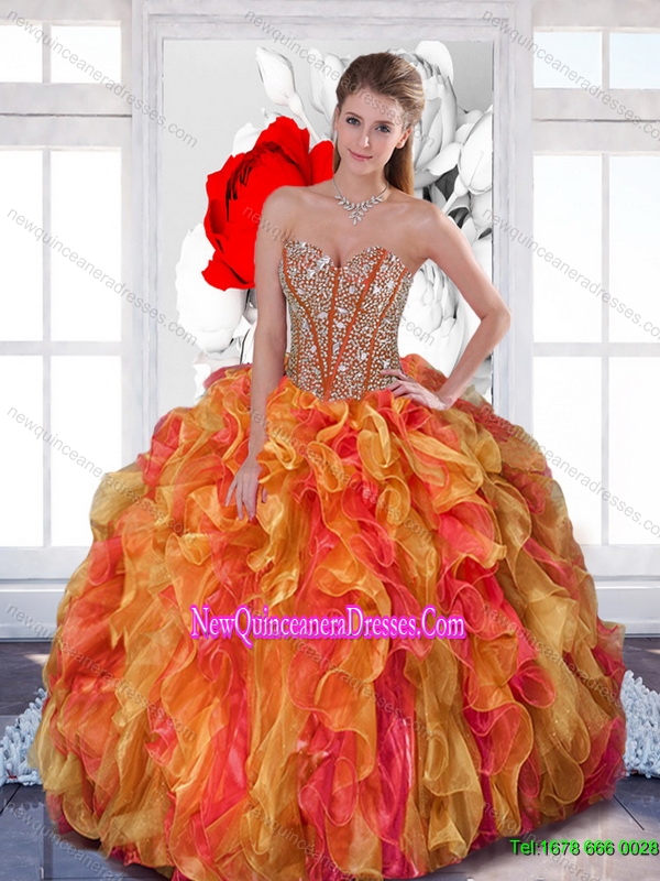 2015 Multi Color Sweet 16 Dress with Beading and Ruffles
