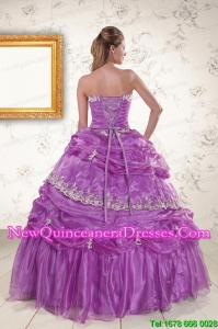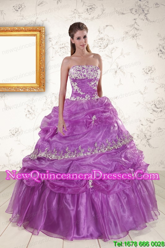 , 2015 New Style Strapless Lilac Quinceanera Dresses with Appliques