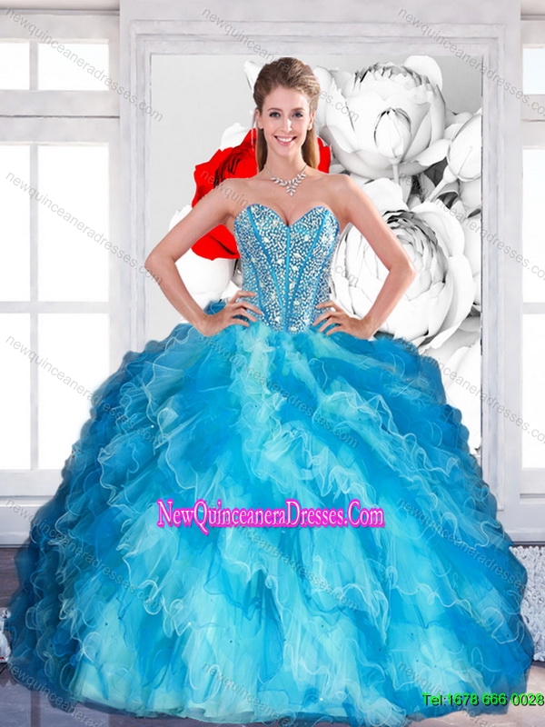 2015 New Style Sweetheart Multi Color Quinceanera Dresses with Beading and Ruffled Layers