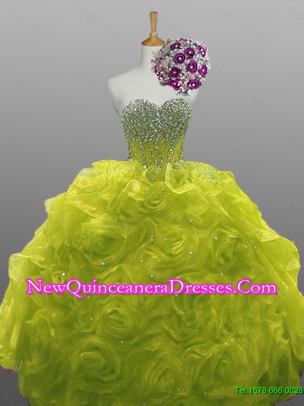 2015 Popular Beaded Quinceanera Dresses with Rolling Flowers