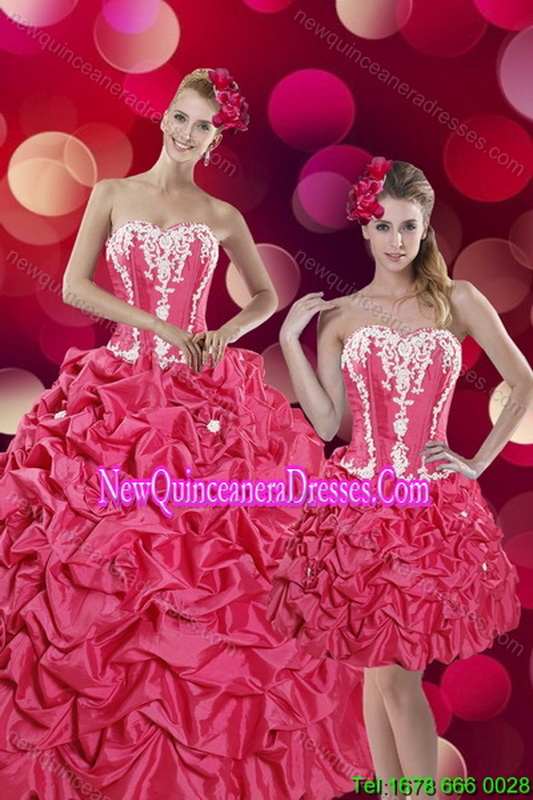 romantic detachable quinceanera dress package for spring, 2015 Pretty and New Style Hot Pink Sweet 15 Dresses with Pick Ups and Appliques