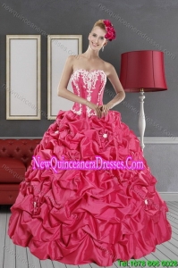 2015 Pretty and New Style Hot Pink Sweet 15 Dresses with Pick Ups and Appliques