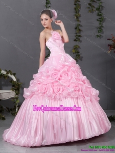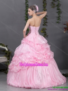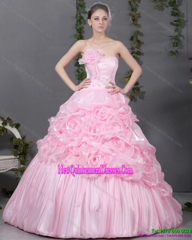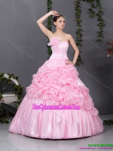 2015 Puffy Pink Quinceanera Gowns with Hand Made Flowers and Ruffles