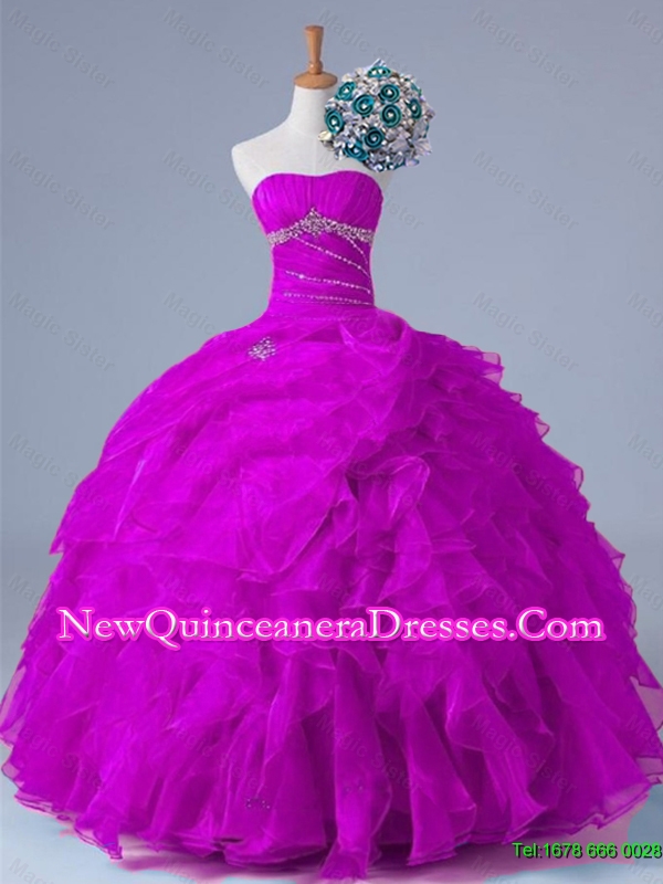 2015 Strapless Quinceanera Dresses with Beading and Ruffles