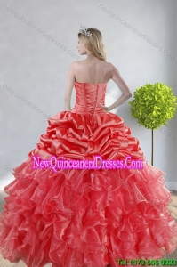 2015 Top Seller Watermelon Red Fashionable Quinceanera Dresses with Appliques and Ruffles