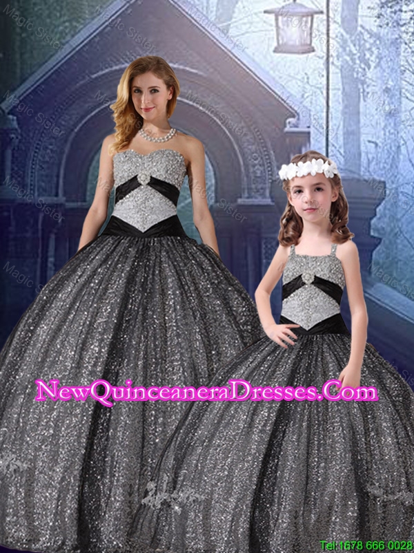 2015 Winter Classical Ball Gown Sweetheart Appliques Macthing Sister Dresses in Black