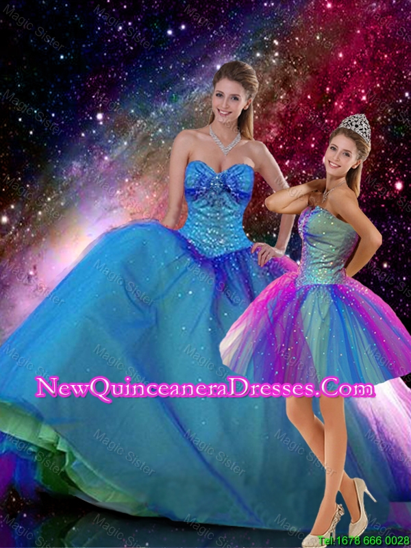2015 winter romantic ball gown sweetheart beaded detachable quinceanera dresses in multi color,