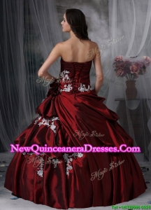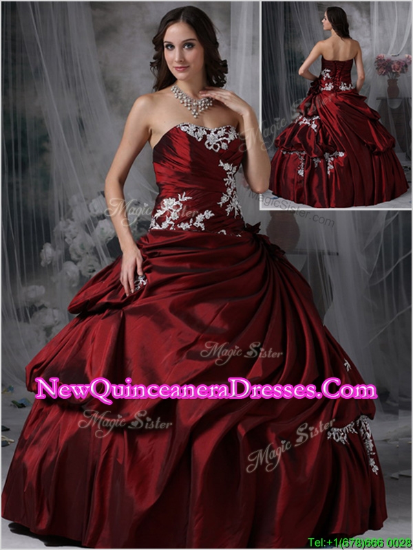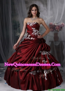 2016 Beautiful Perfect Strapless Burgundy Quinceanera Gowns with Appliques