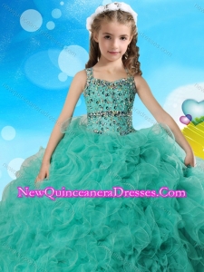 Fashionable Beaded Open Back Little Girl Pageant Dress in Turquoise