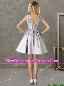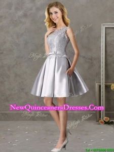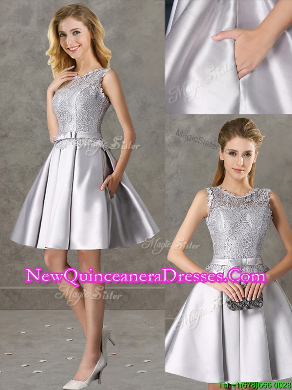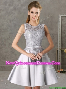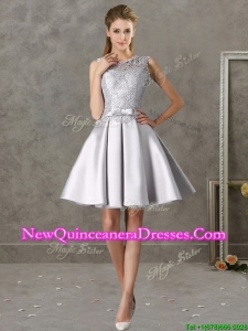 2016 Classical Laced and Bowknot Scoop Dama Dress in Silver