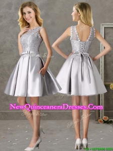 , 2016 Classical Laced and Bowknot Scoop Dama Dress in Silver