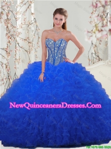 2016 Detachable Beaded and Ruffles Sweetheart Wonderful Sweet 16 Dresses in Royal Blue