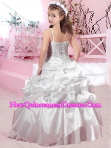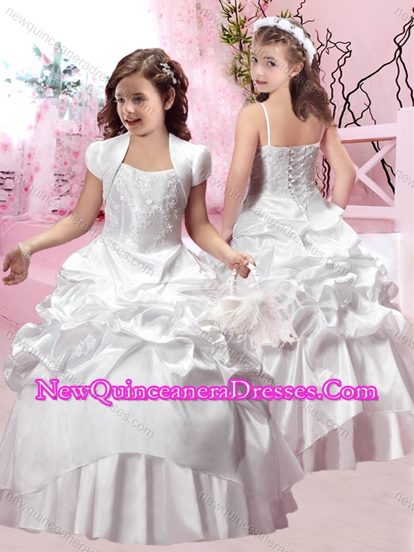 2016 Elegant Spaghetti Straps Applique and Bubble Little Girl Pageant Dress in Taffeta