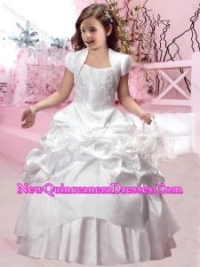 2016 Cheap Scoop Applique with Beading Little Girl Pageant Dresses with Short Sleeves