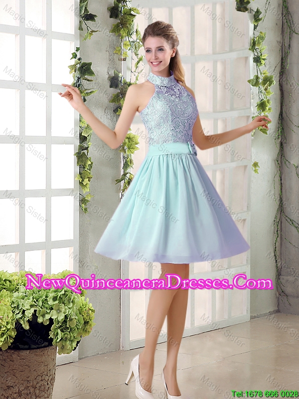 2016 Fall A Line High Neck Belt Dama Dresses with Lace