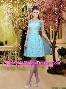2016 Elegant A Line Laced Cheap Damas Dresses with Belt in Aqua Blue