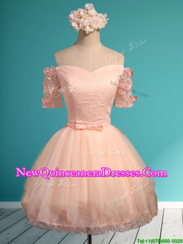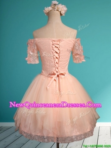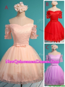 2016 Luxurious Off the Shoulder Short Dama Dress with Appliques and Belt