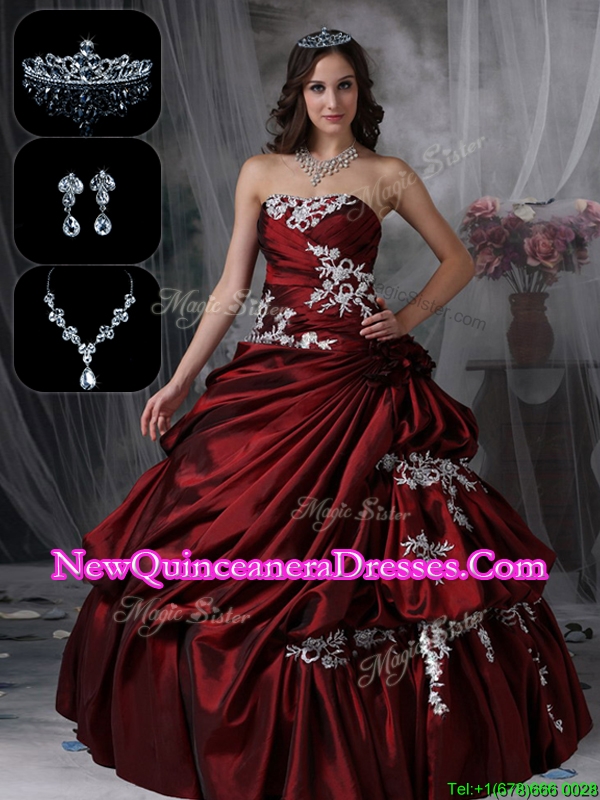 2016 Luxurious Strapless Quinceanera Dresses in Burgundy