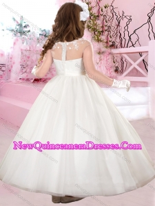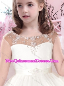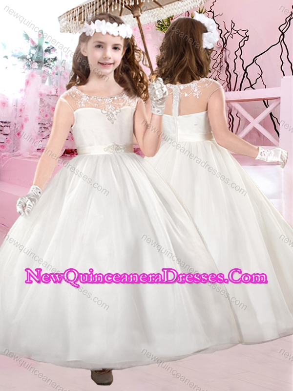 Modern Scoop Applique White Little Girl Pageant Dresses in Tulle for 2016