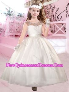 2016 Cheap Scoop Ankle Length Little Girl Pageant Dresses in Champagne and White