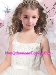 2016 Hot Sale Straps Applique and Beaded Little Girl Pageant Dresses in Organza