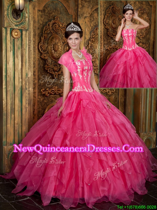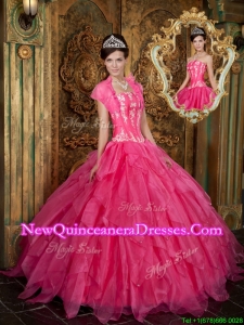 2016 Popular Appliques and Ruffles Hot Pink Quinceanera Dresses