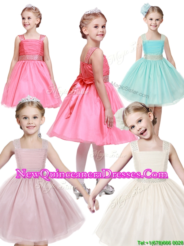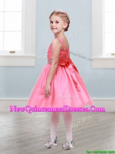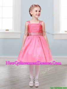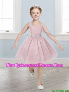 2016 Popular Straps Tulle Little Girl Pageant Dress with Bowknot and Beading