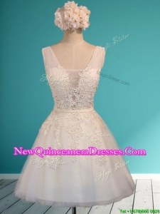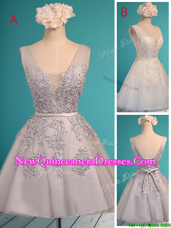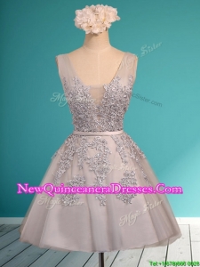 2016 See Through Deep V Neckline Dama Dress with Appliques and Belt