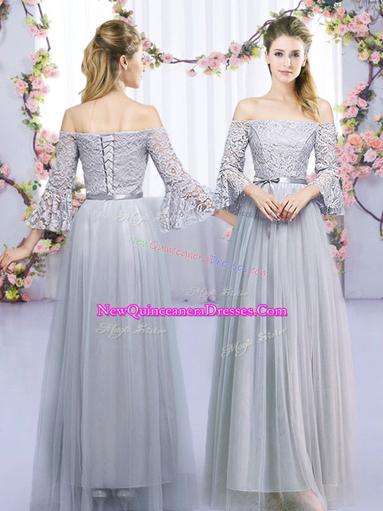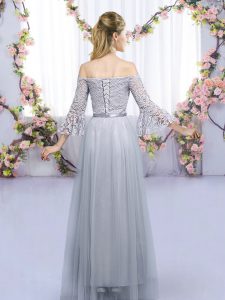 3 4 Length Sleeve Lace and Belt Lace Up Court Dresses for Sweet 16