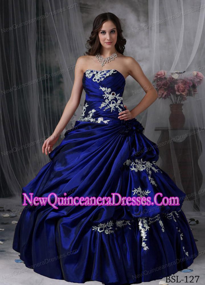 A Ball Gown Strapless Taffeta Appliques Simple Quinceanera Dresses
