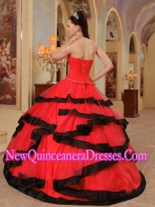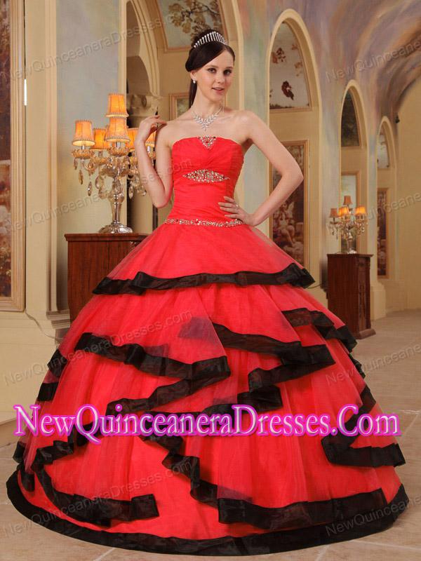 Strapless dresses are one of the sexier styles on the market today. They show just enough skin to be classy without being too revealing.This quinceanera dress features shimmering beads on the bodice and spreads around the waist, while the black trimed layers of pieced fabric add another dimension of beauty to an already lovely gown. A stunning dress for those occasions when you really want to 'wow' the crowd.