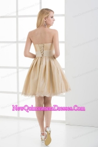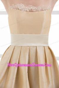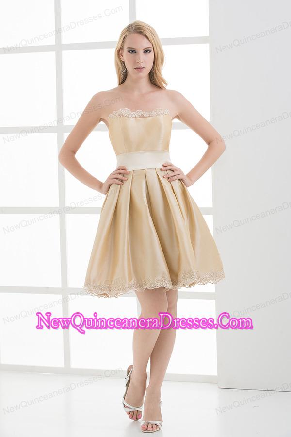 A-line Strapless Sleeveless Embroidery ChampangeDama Dresses