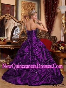 A-line Strapless Taffeta Beading Luxurious Quinceanera Dresses in Eggplant Purple