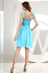 A-Line Straps Chiffon Knee-length Baby Blue Dama Dress