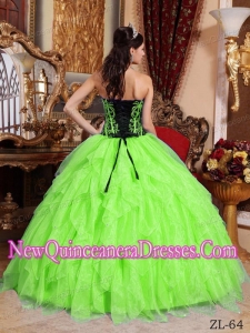 A New Style Quinceanera Dress In Spring Green and Black Embroidery with Beading